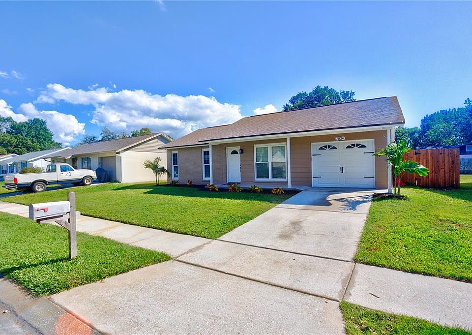 BEAUTIFUL INSIDE! Two bedroom one bath with flex / bonus / office that is Updated and Upgraded home in popular Seven Springs / Trinity area! Enter the home and you will enjoy this move in ready home that boast features of brand new Luxury Vinyl Plank flooring throughout the entire home except for the bathroom which has a beautiful marble floor. Soaring ceilings in the front living room and has an open concept. Nest thermostats and Carbon Monoxide detectors through out and WI-FI video that can easily be transferred over to you. The bathroom is completely remodeled with cabinetry, sink and hardware. In the kitchen you will find beautiful high end cabinets with granite kitchen counters and Travertine backsplash, wine fridge and stainless steel appliances. The cabinetry offers soft closing drawers and some of the cabinets as well for a quite experience. All the new windows are hurricane resistant, and the roof was replaced just 5 years ago and the garage door was replaced in 2021. Brand new fence for extra privacy around the entire yard. There is also a 8x12 shed for your tools, storage or anything else you would like to do with it. The garage has newly painted floors and also has Luxury Vinyl Plank flooring where the washer and dryer are in the garage. The washer, dryer and all the appliances are included with the purchase of this home. There are NO HOA's, NO CDD fee's, and no lease restrictions. This home is close to shops, restaurants, hospitals and much more and is also zoned for JW Mitchell High School. This home is a must see!