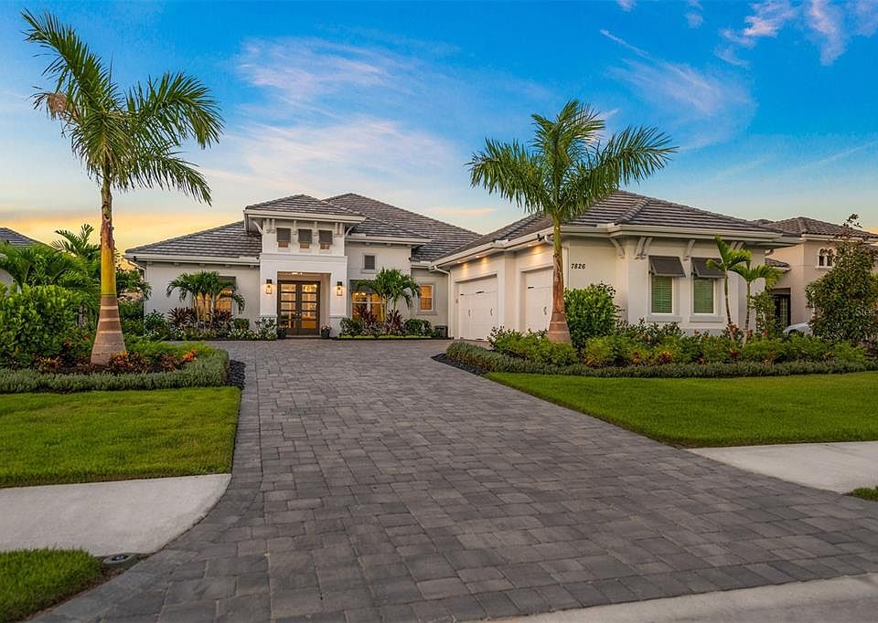 Experience immediate luxury in this beautifully furnished, turn-key and truly "move-in-ready" residence built by STOCK Signature Homes, situated in the exclusive Lake Club Community of Lakewood Ranch, Florida. The magnificent Modified Sterling III exemplifies the epitome of Florida living, allowing you to relish the simplicity of moving into a practically new-construction home, loaded with meticulous upgrades and modifications in one of the finest communities that Lakewood Ranch/Sarasota offers. This beautiful home, featured with the included furniture package depicted in the photos, presents an impeccable balance between elegance and functionality. It showcases a popular floor plan that maximizes space efficiently, featuring soaring ceilings and including 4 bedrooms (3 ensuite), 4 full bathrooms, a large study with upgraded French doors — easily convertible to a fifth bedroom, and a generously sized bonus room located at the rear. The fully optimized three-car, side-loading garage is complemented with epoxy flooring, cabinets, overhead storage, and a workbench. Every window in this magnificent residence is fitted with impact glass, and the home sports an upgraded British West Indies elevation with classic colors. The neutral and open floorplan interior welcomes you warmly through the double doors. The grand room, marked by 13 ft ceilings and 10 ft sliding doors, leads to a spectacular outdoor space, seamlessly blending indoor and outdoor living. The dining area, seamlessly connected to the main living quarters, boasts an upgraded wet bar complete with a wine fridge, sink, and soft-closing cabinets, highlighted by a striking new chandelier. The gourmet kitchen is a culinary enthusiast's dream, featuring soft-close wood cabinets, crisp quartz counters, a marble backsplash, and a substantial island, providing additional cabinet storage and bar seating. The kitchen is furnished with premium stainless KitchenAid appliances and a natural gas cooktop, ensuring a delightful cooking experience. Every bedroom guarantees privacy and comfort, with the primary suite offering French doors to the pool and spa and two sizable closets. The primary bath, a sanctuary of luxury, provides dual sinks, soft-close wood cabinetry, quartz counters, a beautiful soaking tub, and a large walk-in shower. Outside, the lanai is a masterpiece of design with a gas fireplace, a top-notch outdoor kitchen, and an expansive heated pool with a spa, set against the backdrop of lush, private landscaping viewed through a panoramic clear-view screen. Located in a stunning gated community, the Lake Club offers amenities that rival a five-star resort, including exquisite resort-style pools, a majestic clubhouse with a restaurant, a state-of-the-art fitness center, tennis, pickleball, and basketball courts, a dog park, and a playground. Situated in a picturesque neighborhood characterized by fabulous schools, abundant shopping and dining options, and proximity to world-class beaches, this residence is the embodiment of Florida living at its finest. Don't miss the opportunity to experience unparalleled luxury; schedule your private tour today!