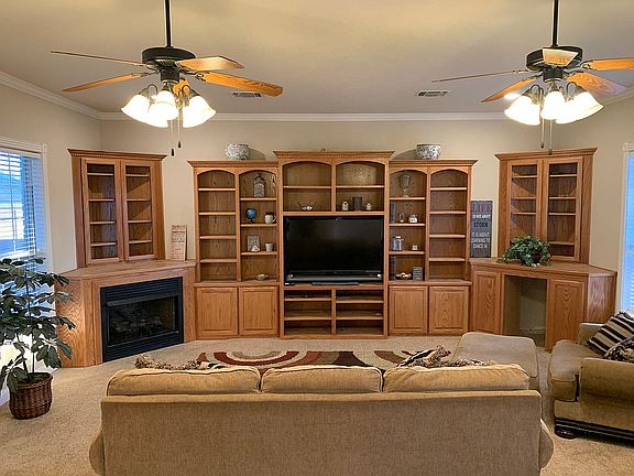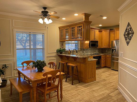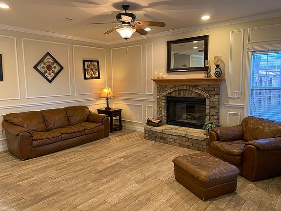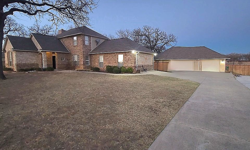 Nice brick home on 1 acre with stunning oak trees & custom metal front door. Large bedrooms, walk-in closets & lots of built-in cabinets. Beautiful view of sunsets. Back porch is perfect for outdoor entertaining. 3 car garage is plumbed for a bathroom & has an abundance of attic storage. New cedar backyard fence