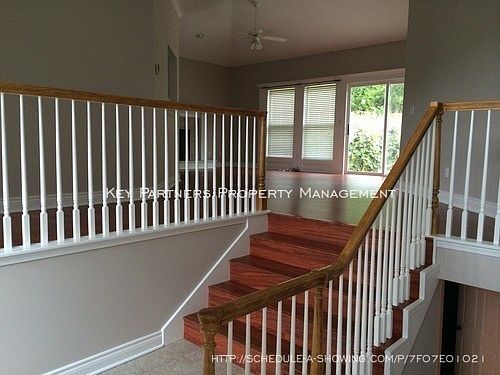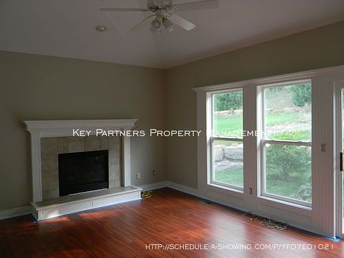 **Available 6/5** This home has an open, inviting floor plan with tons of windows and natural light. There is a great kitchen with tons of cabinets and counter space. There are vaulted and cathedral ceilings throughout with tile and hardwood floors. The living room has a gas fireplace and access to a private, wooded, serene back yard with a patio. There are three bedrooms on the main level, and the finished basement has another HUGE bedroom (great closet space!) with a full bathroom downstairs. This home has a large double depth garage. There is approximately 1778 sq ft. Fridge, washer, and dryer stay with the home.