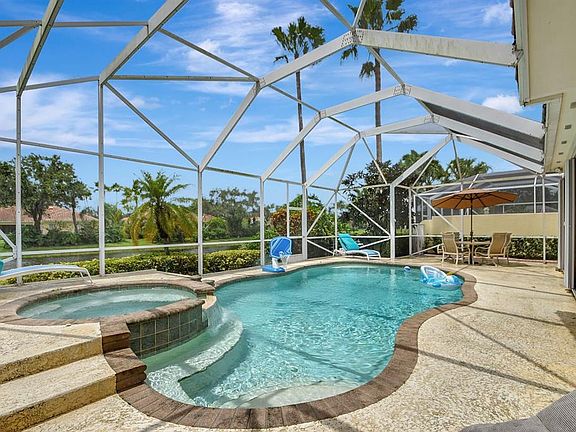 Spectacular EXTENDED OAKMONT POOL HOME WITH A NEW ROOF! The wait is over after being off market due to tenants. Updated. Bring the outdoors in with 18 feet of triple pocket sliding doors which welcome you to your custom heated pool & spa, bi-level pool deck; built lakeside with a generous extended courtyard patio for grilling and entertaining. 12 ft grand ceilings, A/C 2023, new appliances, state of the art pool heating system on wifi. Roof was replaced in 2021 along with all new gutters. Renovated Primary Bath suite. Spotless. Riverwalk has it all, surrounded by a preserve. Enjoy the 12 miles of walking, biking paths, tennis, pickleball, yoga, fitness center, restaurant, less than 8 miles to the ocean, 0 min to PBI airport & downtown WPB. This is truly a gem & will not last!