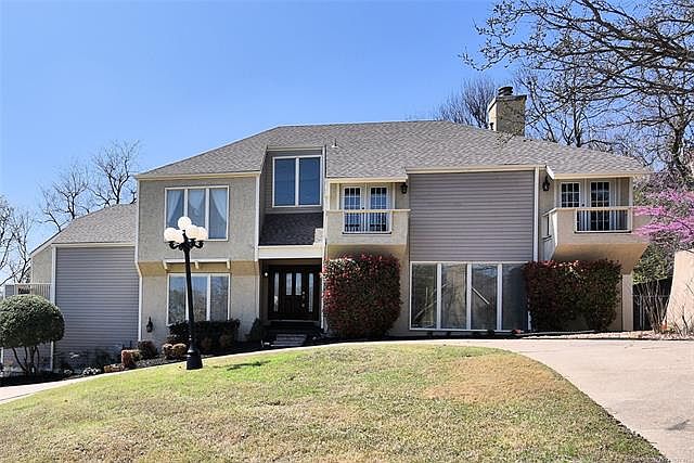 Super big, corner lot, over 3/4 acre in South Tulsa, Jenks Schools. Contemporary design and features throughout including two story master, spacious bedrooms with balconies and walkin closets. Large foyer and open kitchen. Circle drive and safe room.