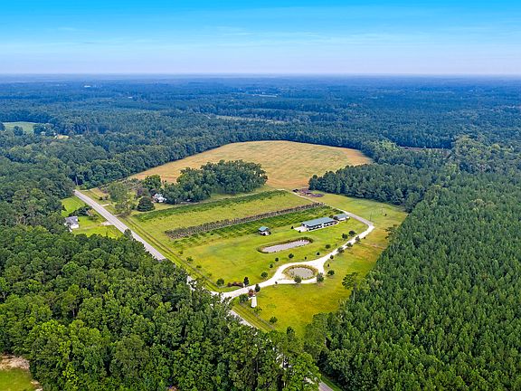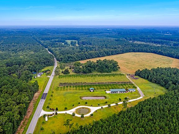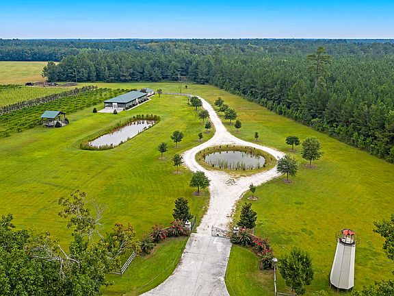 WELCOME TO A 60+ ACRE MAGICAL RETREAT! A true paradise offering multifunctional living. This property has a multitude of potential uses i.e. a horse farm, a farmers market, a wedding / event venue, an Airbnb / VRBO, a RV Park or a Glamping venue! So many choices!! From the stunning Stone (gated) entrance, following a live oak-lined drive, one passes 3 acres of deer corn which can be sold or used personally. A absolutely stunning 5 acre Pecan Grove has also been utilized as a backdrop for weddings/events on this exclusive property. A 20.5 Acre Coastal Bermuda hay field produces 70+ bales (800 lbs) of hay, three times annually. This could be sold or used for your own horses. There are four ponds on the property that are stocked with fish and one even has LARGE Arkansas Blue Catfish!The existing 3,400 sqft climate-controlled wedding event facility has a seating capacity for 250 guests. The space has two, 5 ton HVAC units to cool and heat the insulated space. Commercial grade restroom facilities along with separate catering room equipped with stainless steel sinks and refrigeration unit provide optimal service. All chairs and tables for the event space convey with the sale as well as a tent for the back patio. This property could be an income producing property or a personal getaway to relax and enjoy the abundance of wildlife. The seller ran a successful tree farm on the property several years ago and has since sold off all of the trees. The sky is the limit with this property! The wedding venue space is also listed separately.