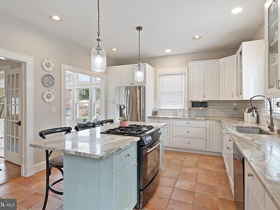Upon entering this beautiful Ruxton home, you're welcomed by a covered front porch leading you to the foyer where you will instantly be charmed with warmth and character. This wellA maintained property offers 5 bedrooms and 3.5 baths, with hardwood floors throughout the majority of the home. The cozy living room features a wood burning fireplace, overlooking the expansive dining room, perfect for entertaining. There is a beautifulA sunroom which can also be the perfect space for a home office. The kitchen boasts a largeA island w/space for seating, stainless steel appliances, making it a delight for cooking. Before you head upstairs, you'll find a large family room with a wall of custom built-ins as well as accessA to a bluestone patio, perfect for evenings with a BBQ or cool nights sitting by the fire pit, offering endless possibilities for outdoor enjoyment and gatherings. The upper level primary bedroom features hardwood flooring, attached primary bath, and walk in closet. There are two additional bedrooms and a 2nd full bath on this level. From this level, there are steps leading you to a cozy loft area/nook, two more bedrooms, which can also be used as a playroom, gym, office, etc. and the 3rd full bathroom. Central a/c on the top two floors. The lower level offers ample storage, laundry, utilities, and access to an additional outdoor secured room, currently being used as a gym. As you step outside this beautifully landscaped property, you have easy access to a fenced in yard with a play area, a 2 car garage, and an extra garage bay for storage. With easy access to restaurants, shopping, and the beltway - come take a look and see everything this home has to offer!
