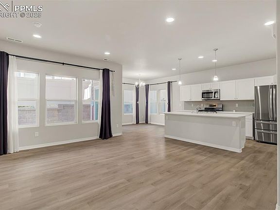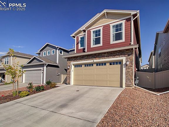 Magnificent 3 Bedroom, 3 Bathroom, 2 Car Attached Garage, D20 school district, 2 Story Gem, located in Skyline Ridge! As you enter into your NEW home you will observe beautiful landscaping and a covered front porch. On the main level you will find a spacious living room illuminated with fantastic lighting, kitchen and large kitchen island, dining area with windows on each wall, and a powder bathroom. There is a sliding glass door through the dining room exiting out to a cozy covered patio and landscaped fenced in backyard. Upstairs there are three large bedrooms and a open loft area which can be used as an office or entertainment area. The master bedroom features a large walk in closet and also includes access to a master bathroom which has a stand alone shower, and double vanity. There are two additional bedrooms and another full bathroom. The laundry room is located on the second floor for easy access. Close to schools, parks, trails, shopping, Fort Carson, Schriever AFB, and the Air Force Academy. Truly a Must See!