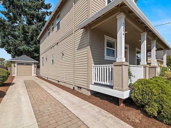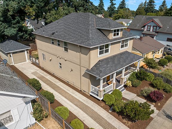 Come see this Modern Foursquare home with wonderful craftsman details throughout. You can have all the charm of yesteryear with the amenities and functionality of today in this newer constructed home. The front yard was designed with low-maintenance and drought tolerant plants. Enter the home under the spacious and inviting front porch. This home has a wonderful and charming, open-concept floor plan featuring hardy and beautiful maple hardwood floors on main level and new carpet upstairs. The light-filled living room feels spacious yet cozy with a gas fireplace and large built-ins. The adjacent formal dining room is inviting and features beautiful wainscoting. The kitchen is nicely appointed with alder cabinets, neutral granite countertops, tile backsplash, pantry, and has new stainless steel gas stove and micro-hood. The main level 4th bedroom works well as a home office which makes for an easy commute. Heading upstairs you will find a bright and open landing, a convenient laundry room with washer/dryer, two good sized bedrooms, and a main bathroom with tiled floor and countertop. The primary suite faces the backyard and features a walk-in closet, and a "just right" tiled bathroom. Enjoy the outdoors entertaining or relaxing on the large patio in fenced backyard. You'll have a single-car garage plus EXTRA deep 76ft and 16ft wide driveway area has ample space for cars/RV/boat/trailer. This home is nestled in the convenient Portsmouth neighborhood just blocks to great restaurants, like Cha Cha Cha, Eastside Deli and fun Chill N Fill with food carts. It's close to shopping at New Seasons, coffee shops, parks, schools and just a short distance to all that vibrant St Johns has to offer. Come make this your new home. OPEN HOUSE Saturday 8/26 1:00-3:00pm