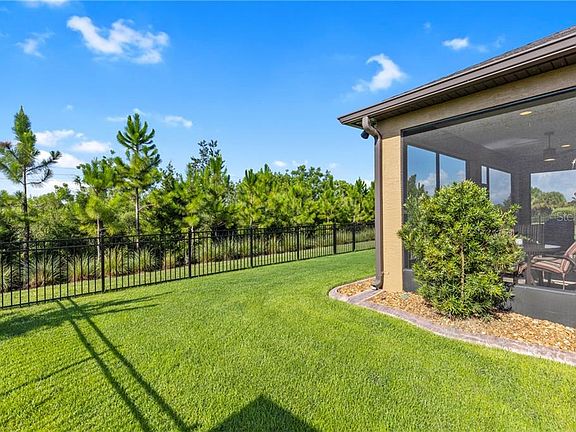 Extended Summerwood on the preserve with fenced yard for the four legged family members! 2+den/2/2extended garage with finished floor. Drive up to this home and you will immediately notice the curb appeal, widened paver driveway, custom landscaping with elevated garden beds and curbing. Enter thru the screened front entrance, the first thing you will notice is the custom glass entry door and then the porcelain plank flooring throughout all living ares except den and bedroom witch have upgraded carpet. 8' interior and exterior Cheyeene doors, crown molding, custom paint, custom lighting, pendants and fans, LED lighting, window coverings, pocket for in master bath, custom tiled master shower, closet organizer in master closet, and tray ceilings. Kitchen is really a dream with quartz countertops, upgraded Kitchen Aid built-in appliances, tiled backsplash, and soft close cabinetry with full extension drawers. Home has Whole-house FCI, Smart thermostat, and water softener system. Now that we have discussed all the details you need to take a long look at the rear yard and screen enclosed lanai. Back patio for grilling and keeping an eye of those little ones in the fenced yard. This home has it all, with and expanded great room that will allow you to host the largest of get togethers. Come take a look you will not be disappointed.