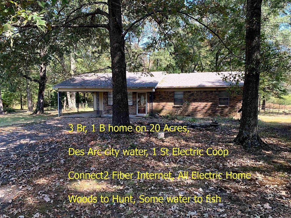 3 Br, 1 B Brick home on 20 acres 7827 Walters Chapel Rd, Carlisle, Arkansas 1, 145 sq ft brick home furnished with 2" Faux blinds and within the Des Arc school district, although very close to Carlisle's district which might be an option as well. Located just inside in Prairie County with Lonoke County 1/2 mile south of property. There is an extra Water meter and septic system from a double wide mobile home in the past on the North side of the property which could be used for another home, MH and or camper in the future. New roofing, Roof was replaced in 2023. It is an all-electric home powered by 1st electric, Has Des Arc Water, and has Connect2 Fiber internet access. Deer are footsteps from door and hunting is allowed as other things in this unrestricted property. For more information, please give the listing agent a call. We personally live less than 5 miles from here and enjoy the same type of country living this property has to offer. We wish you the best.