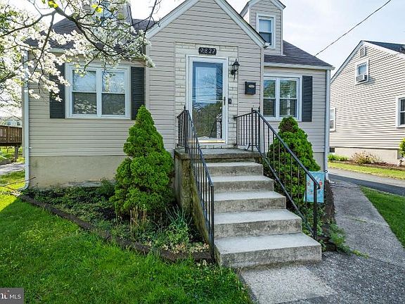 Charming 4 bedroom 1 full and 1 half bath cape cod. The main level has wood floors that welcome you through the living room and 2 spacious bedrooms and a full bath. The eat in kitchen offers stainless steel appliances with a gas stove for cooking and tile flooring. Off of the kitchen is a huge sunroom surrounded by windows and full of natural light, cooled with ceiling fans and a window AC unit and heated with a gas heater for additional living space and access to the basement. The upper level has another 2 bedrooms. The lower level offers a large family or rec room, the laundry room with built in shelving and a half bath and an additional storage room. Long private driveway and a detached garage for plenty of off street parking. Large rear patio and level back yard.