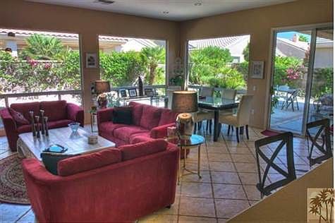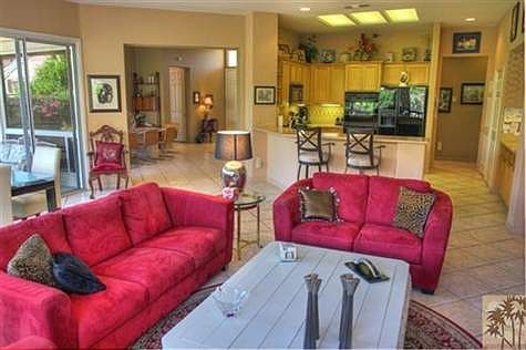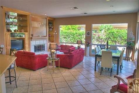 Enter spacious Estate San Remo thru a gated courtyard to double doors leading to bright open entry foyer w/vaulted ceilings, recessed lighting throughout house, tastefully painted. 16 in. diagonal tile throughout house, Berber carpet in BRs. The lge cheerful kitchen has upgraded cabinets, speckled corian counters w/exquisite over sized blk composite sink, Bosch dshwshr and KitchenAid trash compactor. Drawers and pullout shelves custom lined. Large fam rm has brkfst bar, custom built-in entertainment unit, fireplace, casual eating area w/sliding glass doors leading to private backyard. Lrg master ste w/bay window. Lrg master bath has middle island, dbl sinks custom fitted closets; luxurious tub and wlk-in shower. 2 guest BRs have shared bthrm w/tub/shower w/rain glass drs. All BRs have plantations shutters also sitting area at entrance. Lge laundry rm w/custom cabinets, counters, window and soak sink. Whirlpool wshr/dryr appx. 1yr old. Dining room as you enter. Powder room in hall.