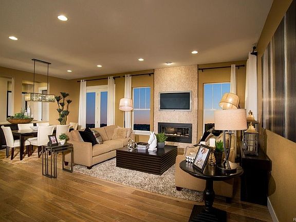 From the moment you step into the front room from the covered front porch, this best selling "Domina" ranch model home will take your breath away. A show stopper w/10' ceilings, 8' doors & designer features are sure to take your breath away. Great room opens to stunning double island w/quartz countertops, butler's pantry & a grand two-sided fireplace to the covered, maintenance free, back deck. Step out from the spacious master suite to the covered back deck & take in a spectacular Colorado sunrise while sipping a morning latte. The staircase to the lower finished basement area opens up to a rec room featuring a wine bar that is simply stunning. Plenty of space for guests or a family member to call their own in the oversized bedroom & full bath. Extras include window coverings, full landscaping to the front & back yards, state of the art Kitchen Aid refrigerator & washer/dryer, upgraded tile, carpet & lighting galore. This home has not been constructed w/TJI Flak Jacket joist system.