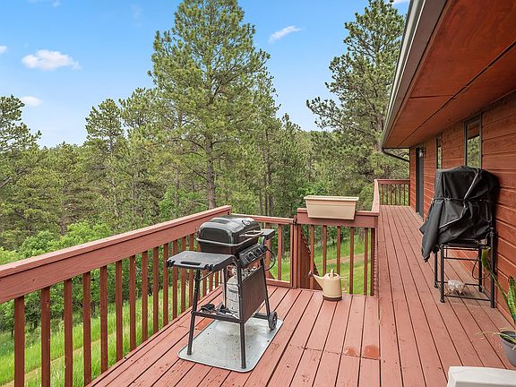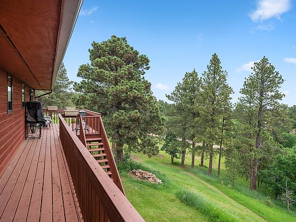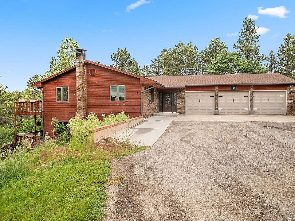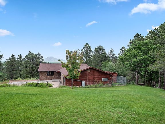 For more information contact listing agent Bill Phillips 605-490-1358 with The Real Estate Center of Sturgis. Nice ranch style home located on 10+ acres and a spectacular view only 3 miles from Sturgis. The home features 1500+ sq. ft. on the main floor with lots of updates and a three-car garage, along with a finished walkout basement. Features on the main level include: laundry/mudroom, half bath, large family area, updated kitchen and flooring, along with a large master bedroom with large walk-in closet, gorgeous master bath, along with a beautiful view of Bear Butte through the doors leading to the back deck. The basement features two more bedrooms, office/bedroom, large family area with wet bar, pool table, full bath, fireplace, and a walkout into the yard. Recent updates include: Main level flooring, paint, light fixtures, kitchen and appliances, new heating and cooling system, along with a completely renovated master bathroom. Enjoy the 10+ acres with towering pines, wooded draw, private hot-tub area, and breathtaking views of Bear Butte! If a gorgeous view, privacy, 10+ acre lot with trees, and a nice ranch style home is what your looking for, this could be it!!!
