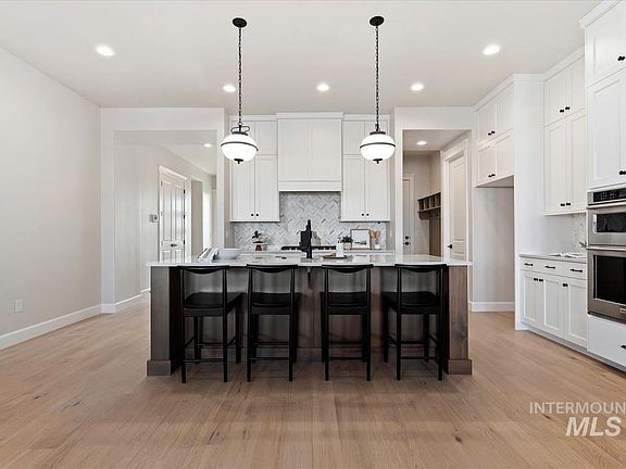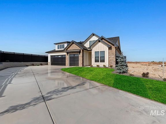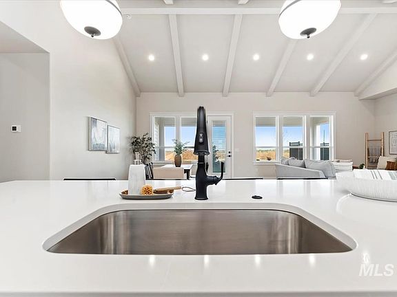 Introducing the Tamarack by Tresidio Homes! This designer showcased cul-de-sac single story home boasts luxury and style. The main living space is bright and open with 10 ft ceilings and black windows throughout. The beautiful fireplace and soaring Cathedral vaulted ceiling in great room w/ decorative beams will make your heart smile. The kitchen is adorned with spacious cabinetry, gourmet appliances, and stunning quartz countertops. It boasts 4 lovely bedrooms, one which is a separate guest en-suite with its own private bath and walk in closet. The primary bedroom is the definition of a retreat, with a gorgeous tray ceiling and THE most lavish bathroom, featuring a glass-enclosed tiled WET ROOM with deep standing soaker tub, large bench, and extravagant shower. Full tile and quartz in all bathrooms, 368 sq ft covered patio to enjoy the most beautiful Idaho sunsets, and no rear neighbors. Upscale future amenities including; clubhouse, pool, playground, park, pickleball courts coming soon! Real Photos!