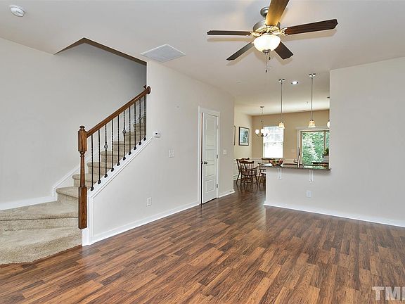 Popular Twnhs Pool Comm. Vinyl siding w/beautiful shaker siding/stone accents. New dwnstrs flr/Upstairs carpet great condition. Blt 2013. Off of Hwy 70/Glenwood Ave conven to airport, 540, Crabtree. Sought-after open floor plan. Granite cntrs in kitchen, soft close cabinet drawers, tile bcksplsh, stnls appls. Eat-in kitchen can accomm lrg table. Cathedral ceiling in mstr/roomy closets/mstr garden tub/tile surround. Energy saving sprayed insulation. Wshr/dryer/frig/tv stay as-is. Lovely flower garden.