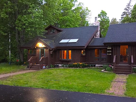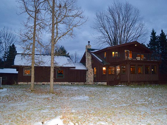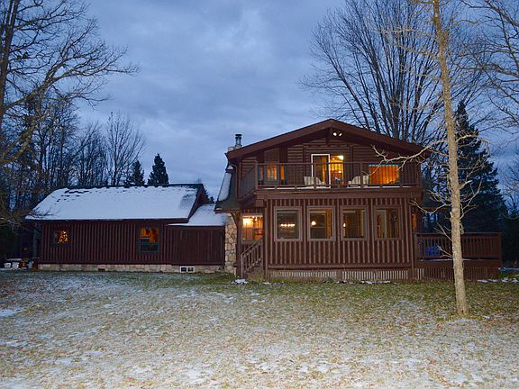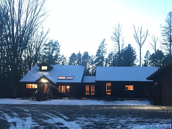 Unique property largely surrounded by the Whiteface river. Log home built in 1910 with original hand-hewed vertical logs filled with unique characteristics is a rare find. Stone fireplace and kitchen island. Log addition added in 2000 followed by multiple remodels including custom kitchen with large copper farmhouse sink. 25.25 acre parcel provides many options for outdoor activities including a 1.6km ski trail, maple trees proven excellent for tapping, river fishing, kayaking, and snowmobiling. Large 25x40 garden surrounded by electric fence containing a cedar pergola for shade and well-established blueberries, grapes, asparagus, and multiple fruit trees. Pollinators welcome with beekeeping area on backside of garden. Pond in front includes small island filled with perennials and bridge across to visit and feed the ducks. Large barn with upper loft ideal for a hobby farm or storage, previously housed horses. Newly paved driveway.