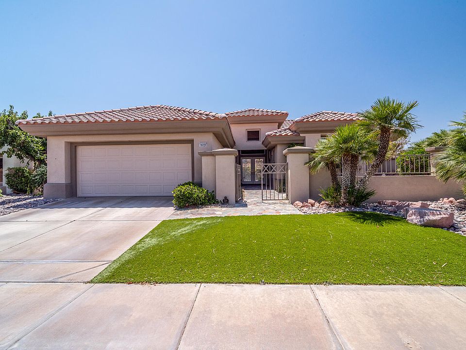 A beautifully remodeled home at Sun City. You will love this popular Baccarat plan located on a quiet corner lot with a south facing patio w/partial mountain view. Private flag stone entry features a spacious patio. A 12 ft. high coffered foyer with iron chandelier and new double leaded glass entry doors, opening to the Living room/Dining room that has attractive tile floors. Remodeled Custom Kitchen with upgraded lighting is stunning. New GE Slate appliances, new granite counters with lovely tiled backsplash, beautiful wooden soft-close cabinets with extra glass doors and frosted glass door pantry, a new granite sink, and breakfast counter. Breakfast room/family room and TV and reading area. The Bedrooms are spacious, a Master suite with a patio entrance and new window treatments. A remodeled Master bath with new freestanding antique style double sinks and vanity w large framed mirror, separate shower and soaking tub, skylights. The 2nd Bedroom and bath features new sink and cabinets and glass block accents. There's also a bonus room/office off of the garage access. Don't miss the relaxing back yard w covered patio and putting green. Sun City Del Webb has 2 Championship Golf courses, 3 clubhouses w state of the art fitness center, multiple restau