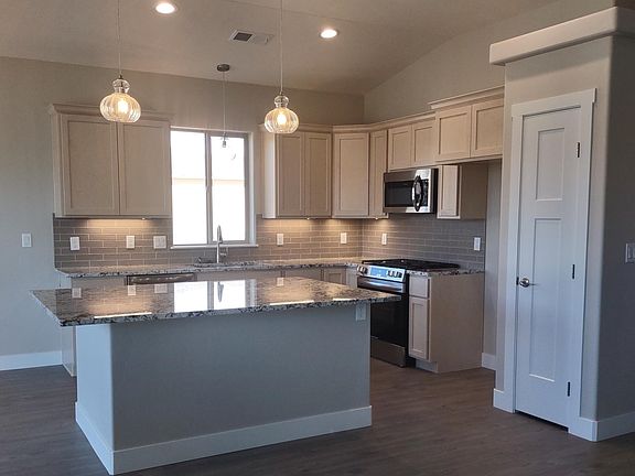 Beautiful new 4 Bedroom home landscaped, and ready to move in. The Kitchen has beautiful cabinets with granite counter tops, a breakfast bar, Deep country kitchen sinks, stainless appliances, combo dining area, large living room with a gas fireplace, ceiling fans, convienent covered patio, close to shopping, and town PLUS RV Parking! All measurements are approximate