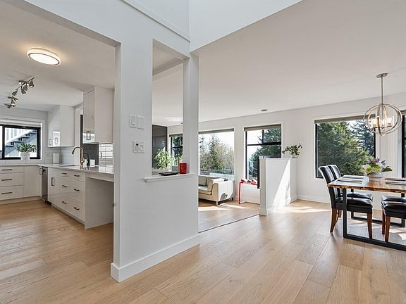 Nestled on a quiet street on Triangle Mountain, sits this meticulously renovated 5 BED & 3 BATH home with breathtaking mountain views. Spanning 3,075 sq ft over three levels of living space and includes a 2 BED & 1 BATH suite. The open-concept main floor is flooded with tons of natural light & nature views from the oversized windows, featuring wide plank flooring and a chef’s kitchen with SS appliances, quartz countertops, an induction cooktop, a built-in wall oven and ample room for storage from the cabinetry and built-ins. Two spacious bedrooms with generous sized closets, a luxurious 5-pc bathroom, and a sprawling balcony complete the main floor. Retreat to the private primary suite on its own floor, boasting built-in closets, a spa-like ensuite w/deep soaker tub, & two private balconies to enjoy year-round views. Ideally located just minutes from amenities like Belmont Market, Westshore Town Centre, parks, trails, transit, and all school levels.