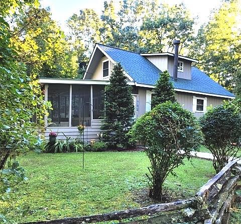 Welcome to our cozy 2 bedroom 2 bath plus bonus room mountain home with a level lawn. Come relax or entertain on the expansive screened porch with hot tub while enjoying end of road privacy and nature . Inside we have a cozy living room with gas log fireplace along with ample room for a large dining table. Our kitchen is remodeled with new cabinets, appliances and granite counters. The main bath has also been updated as well as the windows, roof and HVAC. Outside the carport with covered access to the kitchen door is a huge plus in all weather. There are 3 storage buildings outback, 2 are used as an art studio having power and window unit. Easy drive to the property, mainly paved with short distance on gravel to the home.