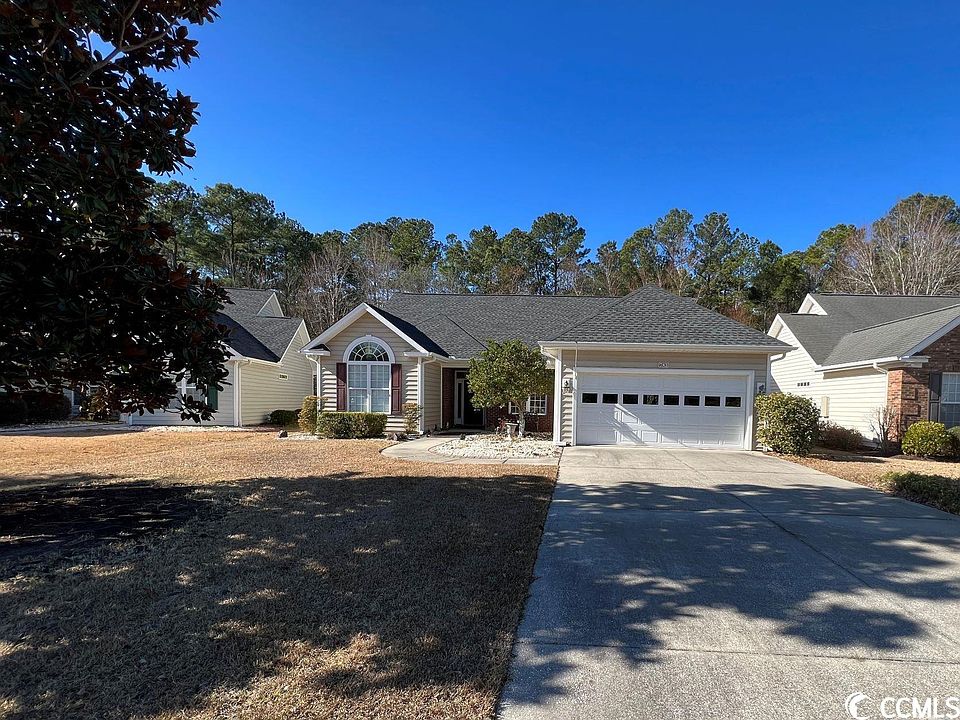 Beautifully maintained Annandale model, 3 bedroom 2 bathroom + den (or 4th bedroom) in tranquil Myrtle Trace South, a very desirable 55+ community. You will love the high ceilings and huge open living space. The open gracious dining room can seat as many as needed for holidays and dinners with family and friends.  A fireplace, with a beautiful mantel that was copied by the owner from a Charleston home, adds old time elegance to this home. A large den, with glass pane double French doors, can be a guest bedroom, 4th bedroom (with the addition of a portable closet) or home office.  The kitchen, with separate dining area, has an abundance of cabinets, granite counters, a pantry closet and  breakfast bar that is open to the living area. A separate laundry room has access to the oversized garage.   The master bedroom, with walk-in closet and en-suite bath,  faces the tranquil back of the home. Two additional bedrooms in the front of the home share a full bathroom.  An oversized garage with a utility sink, can easily accommodate 2 cars and a workshop as well. The roof was replaced in December of 2019. The hot water heater was replaced in December 2017. The HVAC was replaced in 2013.  The motor was replaced in early 2023.  The microwave does not work but a credit will be given at closing for a replacement. All appliances, washer and dryer lightning fixtures and  window treatments convey. A home warranty for a year will be given at closing.Included in the maintenance fee, Myrtle Trace South offers lawn mowing  service, as well a community pool and clubhouse. Enjoy being so close to the beach, great entertainment, and dining, not to mention ample shopping all just minutes away.  All data has been taken from public records, builder information and floor plans.  Buyer is responsible for verification of all data.