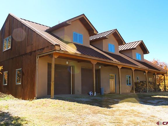 Stunning mixture of Santa Fe style Mission and Telluride rusted steel. The house has extremely large rooms with an open floor plan and very high ceilings. Great layout with 4 large bedrooms a a solarium style office. The 2 bathrooms downstairs share a jack and Jill bathroom plus a half bath by the Garage entrance. The primary bedroom has tremendous amount of space and it's own bathroom. the other upstairs bedroom also has it's own bath. Very private locations with long views and a few beautiful homes and rooftops in the far distance. The landscaping is natural with some empty raised bed planters on the south side and open fire pit. It's ready to be landscaped for full time residence or left as is for a second home. Conveniently located only about 15 minutes from downtown Durango and priced to sell quickly!