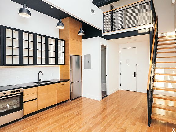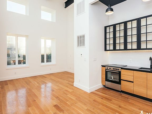 Introducing The Alhambra Luxury Lofts in Bushwick. These fully renovated lofts feature floor to ceiling windows, 16+ ft ceilings, extra large bedrooms, integrated lighting, hardwood floors and unique layouts. The Alhambra is just steps away from the L train at Halsey and a short walk from the J and M trains. Neighborhood favorites such as Nowadays, Father Knows best, Caffeine underground and houdini kitchen. Central A/C High Ceilings Hardwood Floors Laundry in building Roof access Private roof deck Shared backyard Outdoor Space Stainless Steel Appliances Dishwasher Stone countertops Duplex Natural Light in Living Area Gym