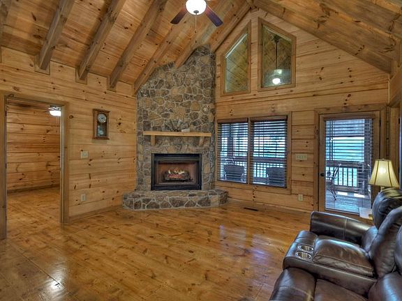 The mountains are calling and you must go... Located in the Cherry Lake area just minutes from Hwy 515 and historic downtown Blue Ridge awaits this immaculately maintained cabin just built in 2017! This gorgeous log home features amazing long-range layered panoramic mountain views right from your porches and living room windows. The interior boasts 3 bedrooms, 3 full baths, beautiful hardwood floors, soaring cathedral ceilings, spacious open floor plan with a floor-to-ceiling stacked stone fireplace in the great room, granite countertops, stainless-steel appliances, and the master and laundry on the main. Enjoy one of the best mountain views in the area from your spacious screened-in deck where there is plenty of room for entertaining. Whether you are considering full-time, part-time, or a rental investment, this is the perfect mountain retreat for you. A mountain sight you have to see for yourself!