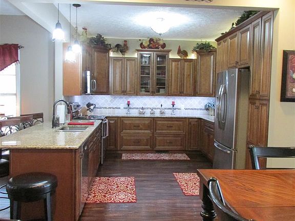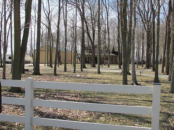 Beautiful modern farm house design boasts a large wrap around -sit-for-a-spell- front porch. 2nd story dormers allow natural light to fill the entry and 2 upstairs bedrooms. This home sits on 4.8 wooded acres. Mostly fenced. 2 pole barns with electric and water. What a great place for a horse! Plenty of space to park a RV. Privacy fence encloses the heated in-ground pool. Lighted pool and room for entertaining. All pool accessories stay. Step inside this well built open concept home. The large family room spans the length of the home and offers views of the pool. Custom kitchen with double pantries and granite tops. All stainless steel appliances remain Breakfast bar and dining area are the center of the open living area. Wood burning fireplace with insert makes the living room a great place to take the chill away on cool nights. Main floor master suite has large walk-in closet. Master bath includes a soaking tub with a view, double vanities and a super sized walk-in shower. Upstairs are 2 additional bedrooms, full bath with separate jetted tub and shower. 2 massive walk-in closets/storage areas plus more closets! The 4th bedroom is presently being used as a theater room. It's new owner could customize this space to suit their needs. 2 car attached garage. New gas forced air furnace. So much to take in! Beautiful country home on wooded acreage with pole barns and in-ground pool! You will fall in love with all it has to offer!