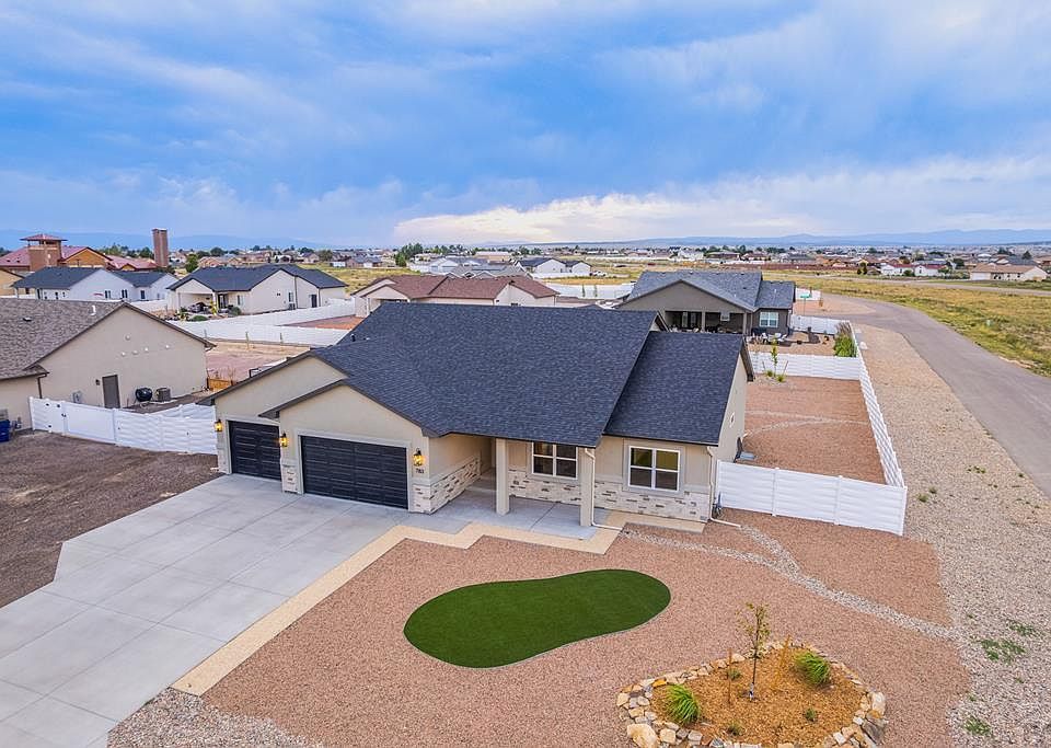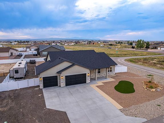 Just completed! This new build comes with lots of extras! Mountain views, Class-4 Hail resistant shingles, full unfinished basement, fenced yard (white vinyl weave), front AND back yard landscaped with 12 ft drive gate and RV Parking. Garage doors are 8 ft high -accommodating larger vehicles. Primary bedroom has a beautiful walk-in shower, his and her sinks and linen closets, stand alone tub and large walk-in closet. 4th bedroom works as an office with glass french doors, closet set up for office equipment. This fully upgraded kitchen comes with Kitchen Aid appliances with in-drawer microwave, hood, walk-in pantry. soft close drawers, extra cabinetry and crown molding. This kitchen does not disappoint! Laundry has a bench, sink, closet and cabinets. Large back yard with covered patio - wired for fan and tv outlets, gas line for outdoor kitchen. Large corner lot, with lots of potential in basement for a full finish.