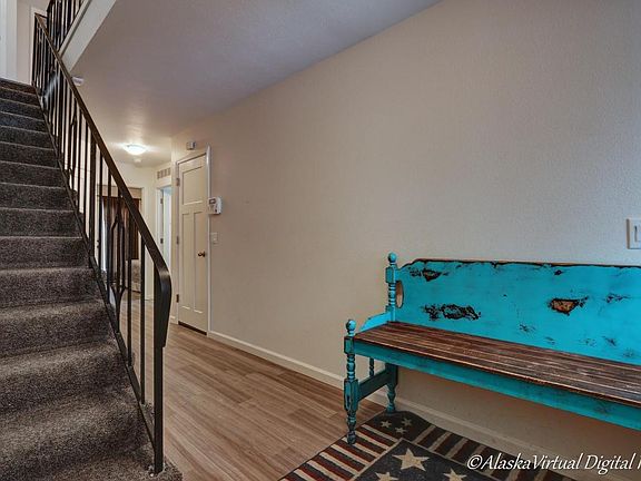 LOCATION, LOCATION, LOCATION!!! Remodeled townhouse close to Wasilla schools and shopping. Maintenance free property fronts greenbelt within walking distance to Wasilla Lake. Vinyl plank flooring, carpet on stairs, large kitchen island and pantry. Privacy blinds upstairs, open kitchen, central vacuum, and security alarm. This is a great home or executive suite.