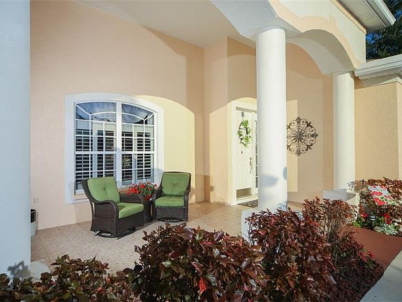 Don't miss this beautiful custom home by LaMaison Builders! Located on a corner lot in the Planter's Manor section of the golf course community, Greenfield Plantation. Enjoy watching sunsets and wildlife from the spacious front porch overlooking the pond. This tastefully upgraded split floor plan home offers plenty of space for entertaining with a formal living room, dining room, as well as a family room; all of which provide access to the cozy patio and pool area surrounded by tropical landscaping. The gourmet kitchen features wood cabinetry with granite countertops, high end appliances and a breakfast bar with a contemporary stone design. There's also a bonus room that can be used as an office or a fourth bedroom. Recent interior upgrades include, laminate floors throughout, crown molding, lighting and fresh paint. Recent exterior upgrades include, landscape, lighting, a pool pump, pool cage screens and fresh paint. Also, AC was installed in 2016. When living in Greenfield Plantation, you will have the benefits of low HOA fees, easy access to I-75 and there are two "A" rated schools within the community. Schedule your private tour today!