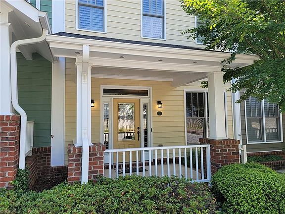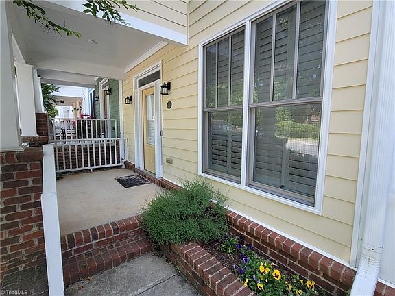 Beautiful townhome located in Downtown Winston Salem near Old Salem. Large front porch, brick paver rear patio with grill area, Brick privacy wall, rear alley entrance. Main Level has open floorplan w/10’ ceilings with ceiling fan, 2nd floor has 9’ ceilings. Plantation Shutters throughout, stranded Bamboo Flooring, Gas Log fireplace bordered by built in cabinets. Kitchen cabinets, granite, appliances, tile back splash, tile floor. Primary Bed overlooks the street has ceiling fan, WIC, P Bath suite. Dual molded sink solid surface vanity, separate tiled shower, tile floor. 2nd bedroom has separate tub shower combo bath, ceiling fan and overlooks the rear alley area. Close to Old Salem shops and restaurants, Children’s Museum, and all of the other attractions in the Historic Area. Schedule a showing today!