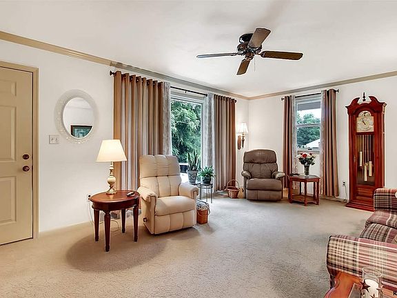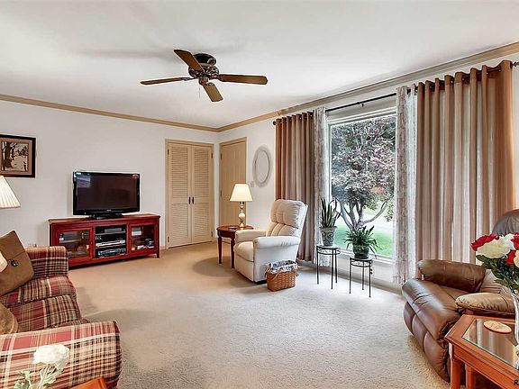 - ROOM DESCRIPTION: Ceiling Fan, Ceramic Tile Floor, Wall to Wall Carpet, Cable Hookup, Blinds/Shade, Eat-In, Drapes/Curtains, Crown Molding