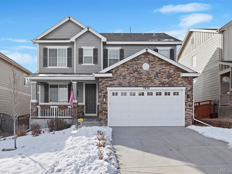 Situated in charming Cobblestone Ranch, this thoughtfully laid out home features a main floor study, substantially updated kitchen with gas cooktop, loft, and 3 bedrooms including a spacious primary suite & 5-piece bathroom. All appliances, including GE Profile and Jennaire, are included. There is a spacious pantry and main floor powder bath. The yard is well-oriented and the landscaping is exceptional, including water features, lighting, and garden beds. The home is close to the pool, trail system, and parks in the area. Ample storage space in the unfinished basement. Updates to home in 2022: landscaping, exterior paint, carpet, tile flooring, interior paint, lighting fixtures w/Lutron elements, custom built-in shelving in great room. Close to both Castle Rock and Parker, this house is ready to be called home!