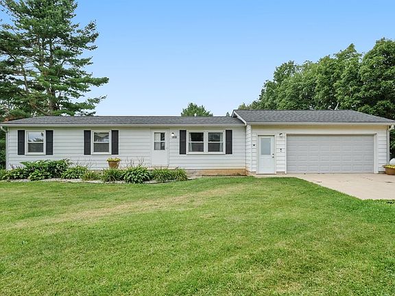 MOTIVATED SELLERS REDUCED PRICE TO SELL! Cute as a button country charmer with a hobbyist's dream workshop! This 3 bedroom, 1 bath ranch on one peaceful acre has been meticulously maintained and updated inside and out. The galley kitchen has all newer appliances, cabinets and quality recycled surface counters. The adjacent dining room includes a sliding door leading to a 20 x 20 exposed aggregate patio on a buildable foundation with frost footings for future home addition. The bathroom has been updated to include a vanity also with recycled surface counter. Attached 2.5 car garage is insulated and freshly painted with recessed lighting and a Reznor heater. 30 year roof is 10 years old with oversized gutters and downspouts. An additional brick paver patio in the backyard is a tranquil place to soak in the sights and sounds of the countryside. The crown jewel of this property is a 32 x 56 custom stick built shop including in floor heat with an on demand propane boiler as well as compressed air lines throughout. This workshop is the perfect place to work on your projects and store and maintain your toys year around. Property to the north is protected by land conservancy.