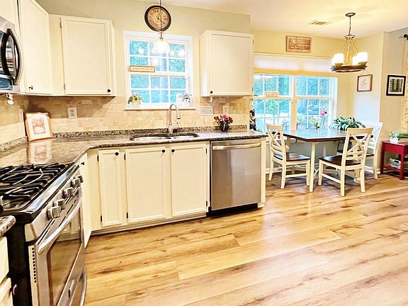 Beautiful updated home, freshly painted throughout; located in the desirable Henderson Park, backs up to McDowell Creek, protected area. Main level features new luxury vinyl wood floors, granite counter tops with white cabinets tile back-splash, 5-burner gas top & all appliances in kitchen. Bright breakfast area overlooking a spacious deck with radiant greenery. Dining room has crown & wainscot trim. Cathedral cielings in great room. Large primary bedroom with trey ceiling & fan. Primary bathroom with granite dual basin vanity, tub with ceramic tile surround. Two large secondary bedrooms. The home features a 2 car garage, dry-walled interior & substantial heavy duty shelving. Upgraded light fixtures. Water tank 2016. New HVAC less than Year, roof in 2013, new gutters & gutter guards. Freshly painted deck overlooks a private treed backyard, built in brand new steps & retaining wall w/ plants & raised planting beds in rear yard. Fenced yard and opens to natural areas and walking trails.