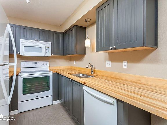 if you're interested please include answers to the following in your message: Any pets? When are you looking to move? How many occupants? I am the owner of this four-plex and the units tend to rent within a week or two of listing. If you're looking to move in July o it probably won't be available then but you're welcome to contact me and if for some reason it's still available later in June I'll contact you for a showing. Small dog or cat on approval - The unit had a small green space that is not fully enclosed and will not be fully enclosed Home is a two bed one and a half bath townhouse style apartment in a four-plex in a nice neighborhood in the Sand Lake area. Very close to Kincaid Park and Campbell Creek bike trails. About 15-20 minutes to JBER or minutes to downtown Main floor: Porcelain tile on entire ground level which has a half bath, living room and kitchen Half bath powder room has concrete countertop and vessel sink Living room has a wood burning fireplace and south facing french doors that open onto the side deck Kitchen remodel features solid maple butcherblock countertops with undermount sink, custom solid cabinets with soft-close hinges and drawers Upstairs: Great size for the bedrooms! Smaller of the two bedrooms would easily fit a queen bed and the larger would easily fit a king. Full bath also remodeled with concrete countertop, vessel sink and porcelain tile Full size washer and dryer Garage: Private one car with garage door opener and a 4x8 storage room with shelves Utilities: Trash, water, snow covered Gas and Electric paid by tenant $1545/mon $1500 deposit No extra pet rent or deposit Background/credit check after application Owner pays trash, water and snow removel