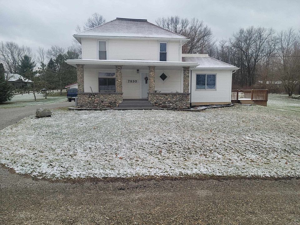 Beautifully recently updated 3 bedroom 2-1/2 bath, 2 story home on 2.14 acres close to many of the lakes of Steuben County on quiet rural road with no HOA restrictions. This home was renovated in 2021 and includes all new flooring and paint throughout, Kitchen boasts new Cabinets, Countertops and Island with new stainless sink, new luxury vinyl planks in Kitchen & Living Room, Large Dining Room features a refinished original wood floor. The Main level Owners Suite includes new carpet and private bath with stand up shower, and access to rear deck. Upstairs you will find 2 Bedrooms and a separate Loft area, all have new carpet and both bedrooms share a large full Jack & Jill bathroom with Tub/Shower. The Laundry room is main level and features a 1/2 bath & Utility sink and new vinyl flooring. Other Updates include new Gas Furnace & A/C, Ceiling Fans, Tankless Water Heater and Water Pressure tank. You will also enjoy the large Concrete and Stone covered front porch and recently rebuilt wood deck off the family room with new double French doors both with views of Lake George!! This property also includes a refinished 14' x 27' rear deck to enjoy the outdoors. a detached garage w/newer metal roof ,and another separate shed for all your garden tools. There is also a 26' x40' 2nd detached garage w/new Gas Ceiling Heater, & Garage door & office area, plenty of room for storage or workspace.