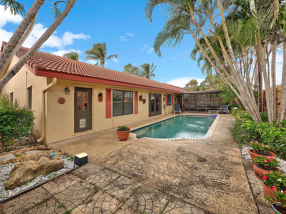 IMMACULATE 3 BEDROOM, 2 BATH HOME IN SOUGHT AFTER E BOCA NEIGHBORHOOD. BEAUTIFUL POOL, PROFESSIONALLY LANDSCAPED BACK YARD, SCREENED PORCH, PERFECT FOR ENTERTAINING. KITCHEN FEATURES GRANITE COUNTER TOPS, MAPLE CABINETS, SLATE BACKSPLASH & STAINLESS STEEL APPLIANCES. METICULOUSLY MAINTAINED & UPDATED HOME IS APPOINTED W/HURRICANE PROOF ETCHED GLASS FRONT DOORS, CONTEMPORARY CATHEDRAL CEILINGS, FRENCH DOORS OUT TO POOL FROM FORMAL LIVING ROOM, HARD WOOD FLOORS & PLUSH CARPETING. EAT-IN KITCHEN OPENS TO FAMILY ROOM & SNACK BAR. COMFORTABLE MASTER SUITE OVERLOOKS POOL & FEATURES HIS & HER CLOSETS & A BRAND NEW ATTRACTIVE MASTER BATH, WITH NATURAL STONE & LARGE RAIN STYLE SHOWER. INTERIOR UTILITY ROOM, BRAND NEW HURRICANE WINDOWS & DOORS, BRAND NEW FENCE IN BACK YARD, & TWO CAR GARAGE.