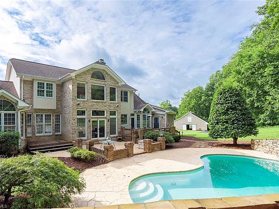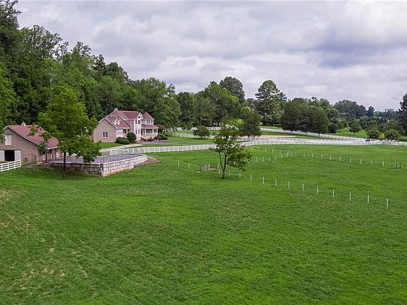 Bring your horses! Updated home with new granite, ss appliances, new carpet, paint, landscaping. Master on main inclds vaulted ceilings, double vanity, tiled walk in shower, wic. Guest BR on main with ensuite bath. 2 story living room with impressive stone fireplace. 4 stall barn with tack, feed room, hay loft. Covered storage behind barn for tractor/equipment. Fenced sand riding ring, multiple large level pastures, dry lots accessible from stalls for easy care. IN ground pool, large deck and patio area.