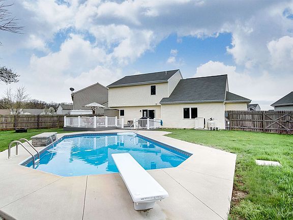 OPEN HOUSE SATURDAY, 4/27, 1pm-3pm. Check out this must see home in New Haven! Tucked away on a cul-de-sac lot in the family friendly Castlerock, this home offers 4BR/2.5BA, 1800 sq ft of living space, and a gorgeous in-ground pool. Enter in through the inviting front door and notice new hardwood flooring in the formal living room. Bright natural light shines through the large picture window and flows into the large eat-in kitchen. There is fresh paint throughout. The kitchen has new stainless steel appliances and ample cabinet and counter space, including a breakfast bar. There is a great corner pantry as well. Open to the kitchen and dining room from the other side, is a cozy family room boasting a gorgeous brick fireplace, new hardwood flooring, and a cathedral ceiling. Finishing out the main floor of the home is a half bath and separate laundry room with access to the garage. Upstairs you will find the master bedroom with its own private bath and walk-in closet. There are 3 additional bedrooms and a full bath upstairs as well. Outside off the dining area there is a spacious wooden composite deck overlooking the awesome in-ground pool. The pool has a new heater to keep the water the perfect temperature throughout the season. The large backyard is completely fenced in and is a wonderful place for kids and pets to play. The 2-car garage also has a bump-out extension for extra storage. With great curb appeal and a desirable location you won't want to pass up the chance to call this your new home today!