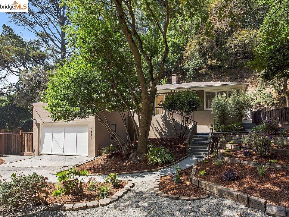 Warm and inviting Mid-Century Modern home with an ideal layout and expansive lot. Step inside and you’ll notice the wall-to-wall windows and Mid-Century touches. The spacious living room flows effortlessly into the open dining area and double doors allow easy flow from the patio/garden to the dining room and kitchen. Imagine lively dinner parties surrounded by nature. Newly updated kitchen features modern appliances, ample storage space, a skylight that floods the room with sunshine, and an eat-in dining area. Down the hall from the public areas are 2 bedrooms sharing a large hall bath, and a spacious primary with another sizable en suite bath. Off the kitchen, find a laundry room & bonus space perfect for a home office. Downstairs room features a large closet, half bath, and exterior door, making the possibilities endless. Speaking of possibilities, this rare, 1.31 acre lot adjoins the Claremont Canyon Regional Preserve and may allow for possible expansion potential.* Attached 2-car garage with interior access. Close to hiking trails, Claremont & Elmwood shops and restaurants, you'll have everything you need close by. With easy access to the 24, commuting to the wider East Bay is a breeze. You simply must see this wonderful opportunity for yourself. *Buyer to verify with city.