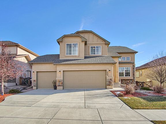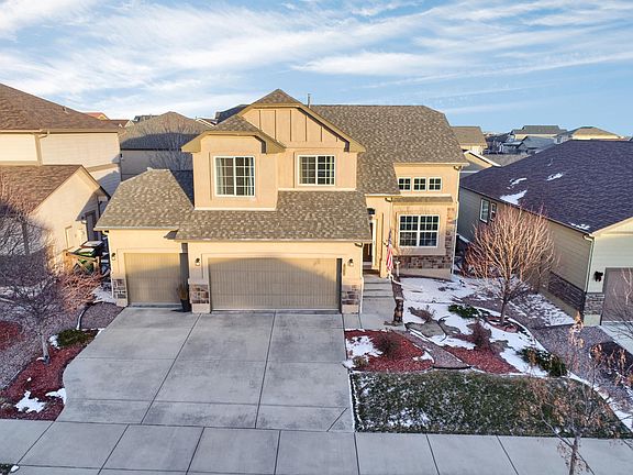 Impeccable 4BR, 4BA, 3 CA home on a great lot in Banning Lewis Ranch, perfectly situated for privacy. This home shows like a model. The welcoming foyer draws you into the home with soaring vaulted ceilings, large windows and Peak views. Gleaming hardwood flooring leads to the kitchen which overlooks the great room and dining nook, making this home ideal for hosting large or small gatherings. Beautifully appointed, the kitchen offers maple cabinets, granite counters, stainless steel appliances and pantry. Unwind in the generously sized great room with cozy gas fireplace. A half bath/laundry completes the main level. The upper level features three bedrooms plus a loft. The spacious master suite provides a 5-pc bathroom and walk-in closet. Two secondary bedrooms boast views of Pikes Peak. The finished basement features a family room, bedroom and bathroom. Enjoy summer evenings on the patio overlooking the back yard. Banning Lewis Ranch offers The Ranch House Community Center with fitness room, pool, splash zone, extensive patios with fireplace & grills - host to many community activities including live music and Friday night child care. Access the miles of walking trails and open space leading to community schools, parks, tennis courts & water park. Excellent location, just minutes from the Power's Corridor, shopping & dining. Why build? There is nothing left to do but move in and enjoy this amazing home.