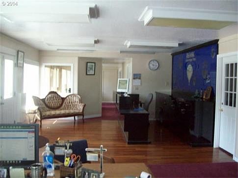Attractive office building that can be multiple units. Located on one acre with river frontage. Not in the flood plain. Has a small rental house and a 8\'X 42\' steel storage container. Lots of parking.