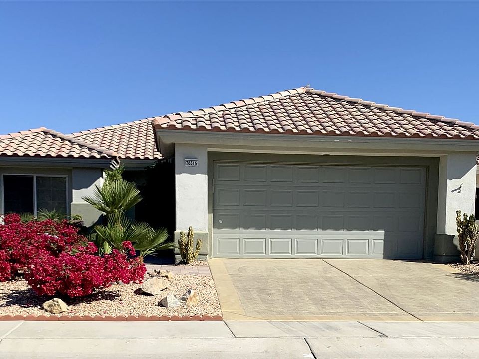 Sun City Palm Desert- Gorham. The best things come in small packages. This home has been updated with a weepscreed & contemporary paint scheme. A paver walk way provides curb appeal while the north facing rear yard features a spacious paver patio w/sitting wall & desert landscaping. Inside, plantation shutters & 5in baseboards are throughout. 12x24in tile is in all but the bedrooms. The remodeled kitchen features: 36in self-close cabinetry w/pullout shelve; slab granite counter, backsplash & pass-through; touch-free stainless appliances & an oversized decomposed granite sink. Additional storage has been built into the nearby wall. The master suite has a vaulted ceiling, bay window & his&her closets w/builtin storage. The master bath has dual sinks & a stall shower. A shower/tub is in the guest bath. Bath surfaces are cultured marble. A utility room leads from the home to the garage which has a utility sink & builtin storage.