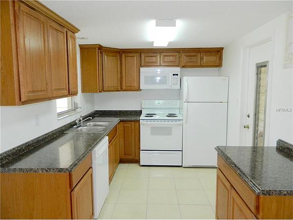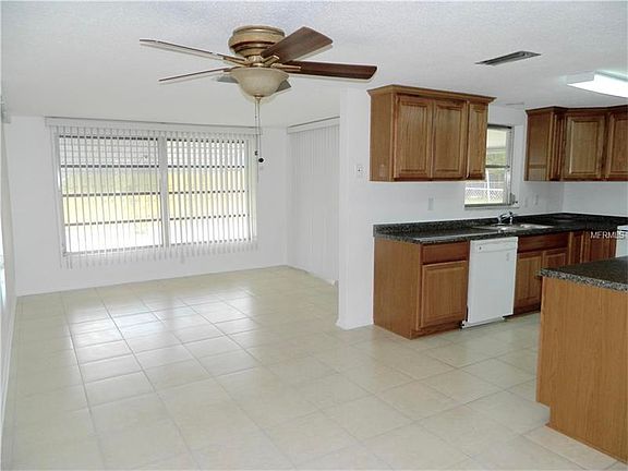 This Jasmine Lakes home is cute and clean and ready for you to move in. Tile floors in all of the main areas gives your home an open and updated look. The kitchen has been updated and is ready for you to cook your first meal in your new home. You will love the Xeriscaping of this home as you never have to water the lawn or maintain grass. The large front porch welcomes your guests to your home and there is room for a love seat or a few chairs for those evenings you wan to sit and chat with your neighbors. The back yard is large and has room for a pool. The rear screened patio is large enough for a full sized dining set or you can utilize the fold up table that is already in the patio. When not in use, you can flip it up against the wall to give you even more space on this already large patio. The master en suite has a new vanity and sink and a walk in shower. The master suite provides a large closet area for plenty of storage. This home is light and bright with an all white pallet so you can add your own colors and personality.