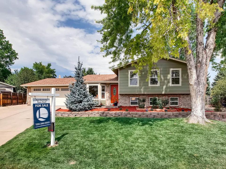 Fantastic home situated on outstanding lot! This lovely updated family home features fresh exterior paint, newer a/c, hardwood floors throughout the main floor, stairs and upstairs hall. Updated kitchen with stainless steel appliances and eat in space. The lower level features a family room with fireplace and built-ins, bedroom, bath and laundry. On the upper level you'll find 3 additional bedrooms and bath. An unfinished basement offers space for storage and additional laundry hookups. The backyard is gardeners dream with rose bushes, apple trees, pear trees, raspberries bush, grape vines and raised beds with a variety of veggies. It is huge with a lovely concrete patio and composite deck perfect for entertaining and plenty of space for kids to play. Cul de sac location, RV parking, close to amenities, Aspen Grove and Chatfield State Park...this is the one!
