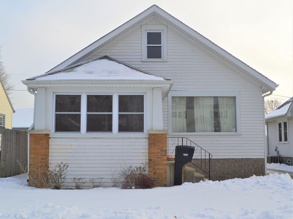 Adorable 1 story single-family home right in the city of Kenosha! 2 bedroom, 1 full bath, 1 car detached garage with a pulley door, and vinyl siding. Natural wood trim throughout. Screened in front porch. Glass block windows with vinyl trim. Living room has wood flooring and inviting French door. Full bath on main level tile shower, and cabinet space for storage located behind door. Kitchen contains vinyl cabinets electric cook top, wall oven, and stainless steal sink. Plenty of cabinet space for storage. Laundry is located in basement with gas and electric hook ups for dryer. 2 extra rooms in basement (Rec room and Bonus room). 100 Amp electric, newer roof within the last 20 years. Make this your home today!