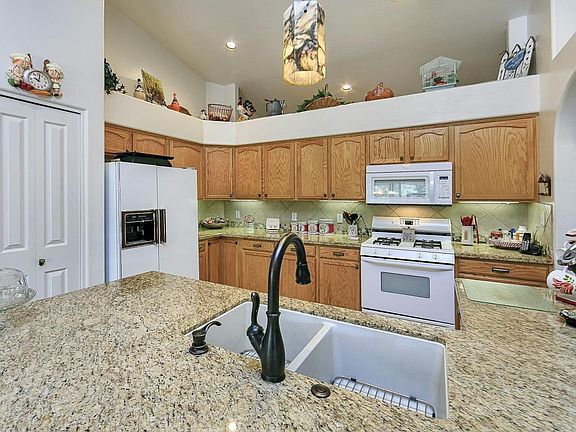 Delightful single story home complimented by private backyard paradise. Open floor plan includes living room featuring beautiful Acacia hardwood floors, 10 ft ceilings, corner fireplace and views of lushly landscaped backyard. Upgraded kitchen with Granite counters, pull out shelving and composite sink. Three bedrooms plus den/office. Relaxing covered patio. Well maintained and move in ready!