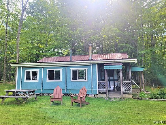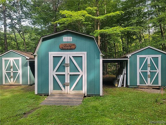 This is not your average camp! Two tax maps combine for 6.9 acres of immaculate, secluded sites, in rural Allegany County. Quiet peace and serenity is waiting for you, but still close enough to the charming town of Cuba for restaurants, shopping and a casino! High speed Internet! Sellers have done a ton of landscaping work making it like a park. The camper has been well maintained and with the addition, it feels like a home/cabin. All the appliances work including a shower and bathroom! Plenty of storage with 3 outbuildings with electric. There are 2 camping areas, each have their own pond, their own new septic systems and their own electrical system. You’ll have your very own fishing hole, finding big bass and sunfish in both of the ponds. In the morning you can enjoy a cup of coffee, gazing out at the pond. You’ll see all kinds of wild like, including deer, herons, fish jumping, etc. Plenty of prepared spots for friends to bring their campers or decide to build your dream cabin. It’s so peaceful to walk this acreage with its woodland and perennial flower gardens, watch the abundant wildlife, fish in the ponds, or sit by the fireplace. Start making memories for years to come!